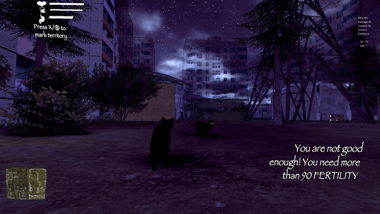 You are a street cat, landed in the besieged town. Your goal is to exterminate rats and other pests which destroy human supplies. Will you become the same parasite or will you be able to improve your skills of hunting and gathering, to overcome hunger, and bring benefit to people?