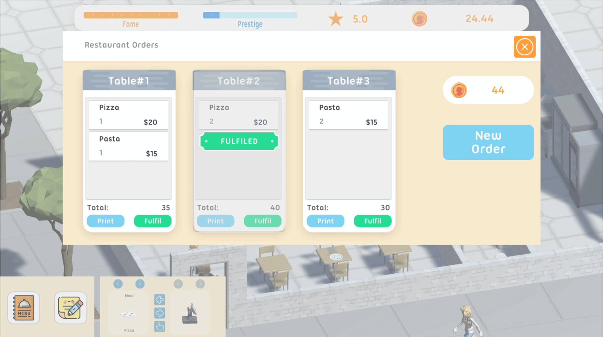 Congratulations, you own a restaurant! Now just chat with customers, take orders, cook, serve, clean, design your interior and menu, order ingredients...so much to do! Earn enough cash and hire some help to make life easier. Or is it? Try to balance customer needs, employee quirks and your cashflow.