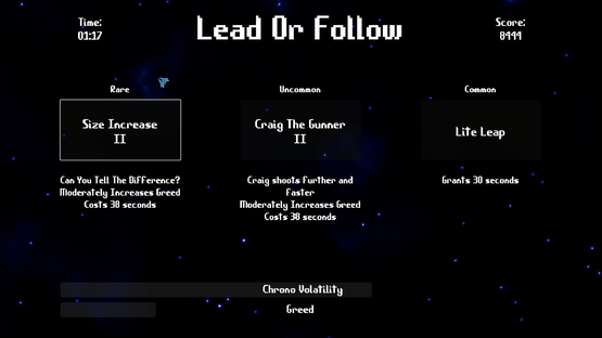 Time is your currency and challenge. Destroy crystals for time; lose it if they vanish. Every run offers new power-ups, with choices that shape your journey. Unlock more as you play, all set in a visually dynamic, arcade-inspired space roguelite.