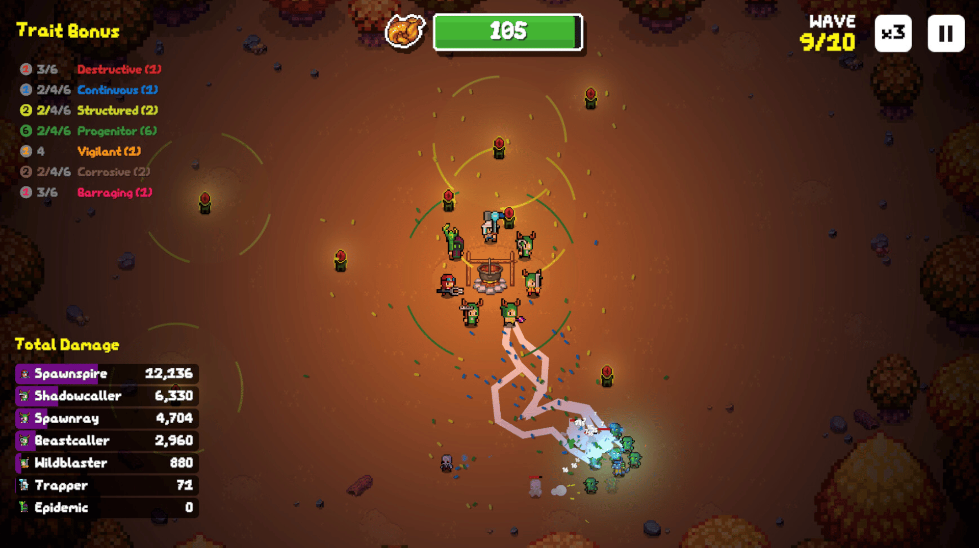 Protect your campfire cooking in Dinner Defenders, a roguelike tower defense game. Summon units and utilize combination of their skills and synergies to fend off the hungry goblins and orcs. Survive, and finally have your well-deserved meal in the middle of forest!