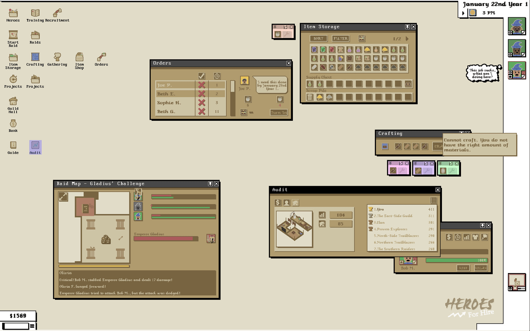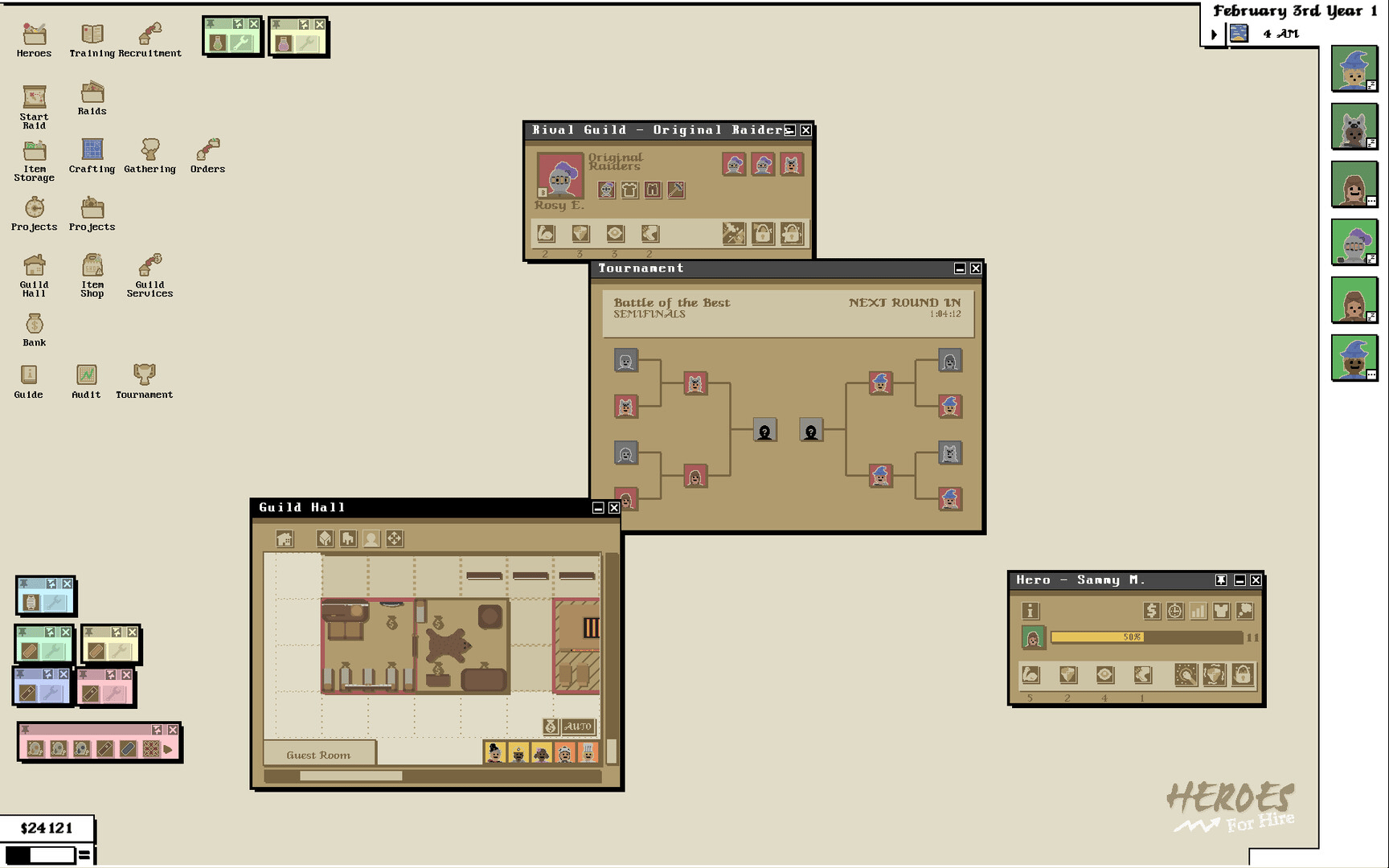 You've joined a guild before, right? So, where's the trouble in managing a guild of your own, too? Guide your heroes, raid some dungeons, and grow your guild to rise from the bottom of the ranks right up to the top in Heroes for Hire!