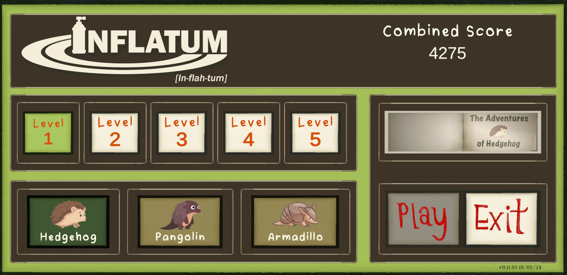 Inflatum is a cute animal rescue game. Rescue the poor hapless critter who is only trying to reach his stranded family. Save him from the hazards littering the landscape. Use gas tanks to inflate objects to come to the critter's aid.