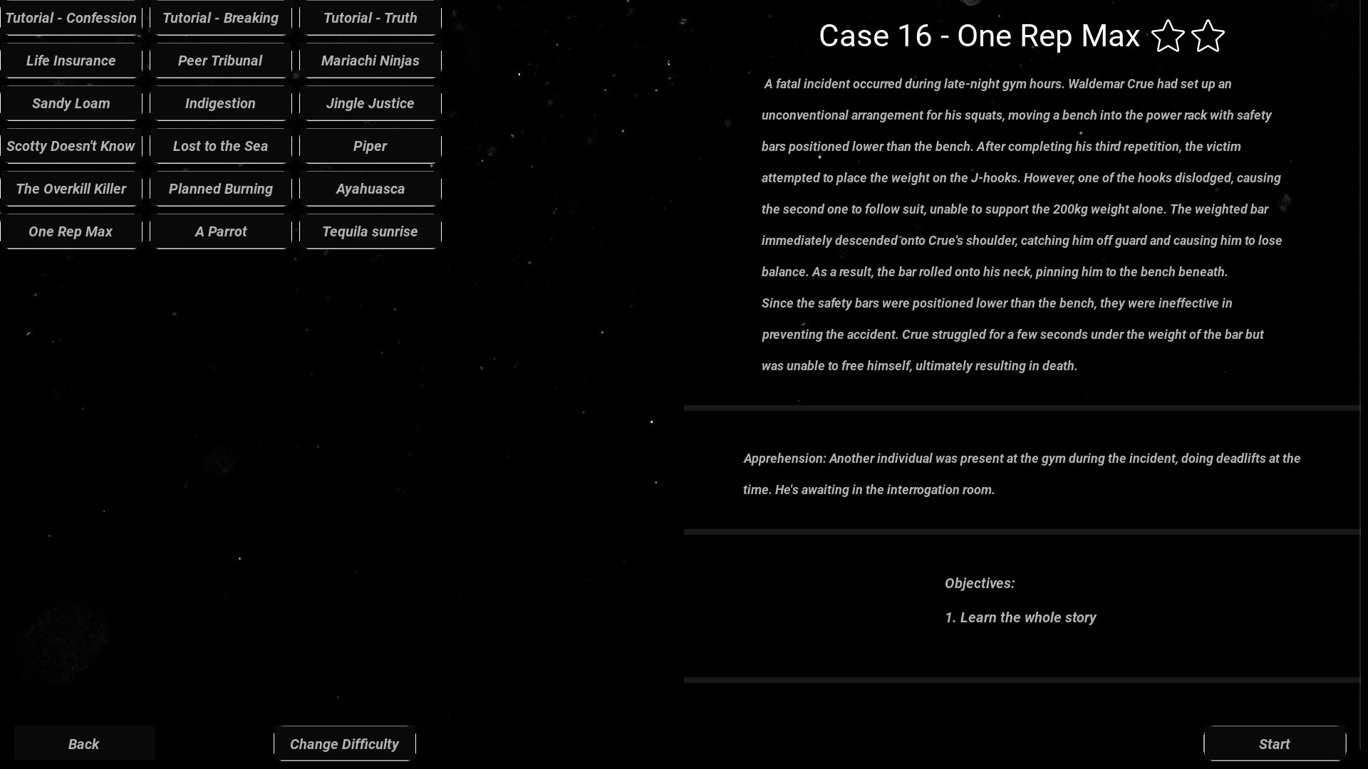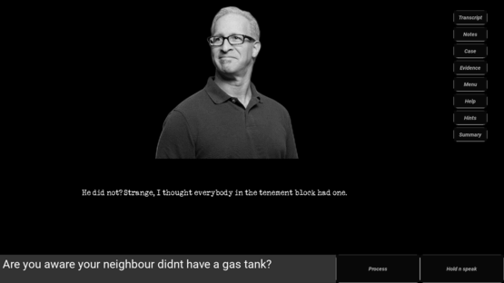 A text-based, interrogation-centered puzzle game with text and voice as the main inputs. Each of the 18 cases is a self-contained mystery for you to solve. It is up to you to eradicate crime in the tri-state area once and for all.