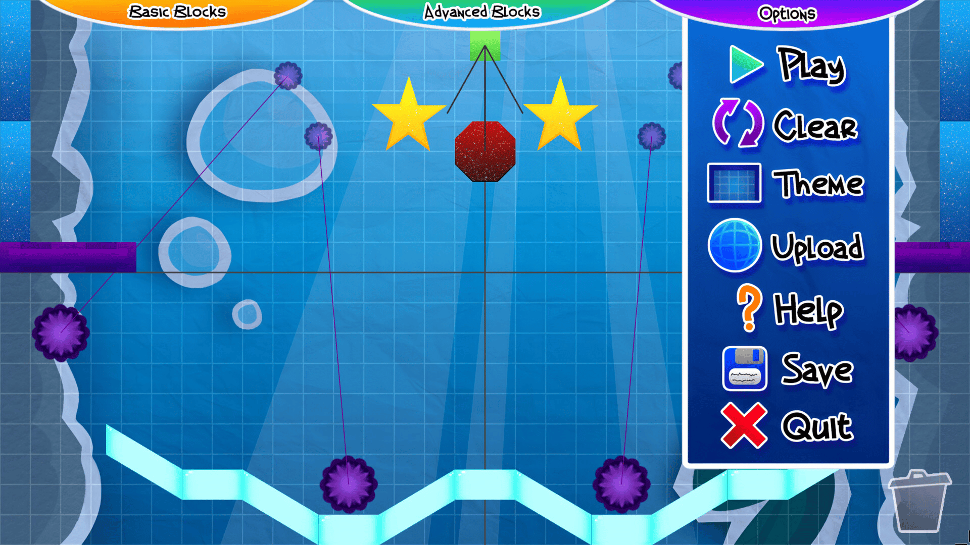 Builder Edition is all about using various physic game mechanics, like gravity, bouncy blocks, bombs and more to safely get the Stars to the ground floor to solve Physics-based Puzzle levels. Play the 150+ included levels and then try your hand at making your own and sharing them with the community!