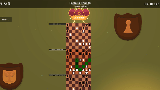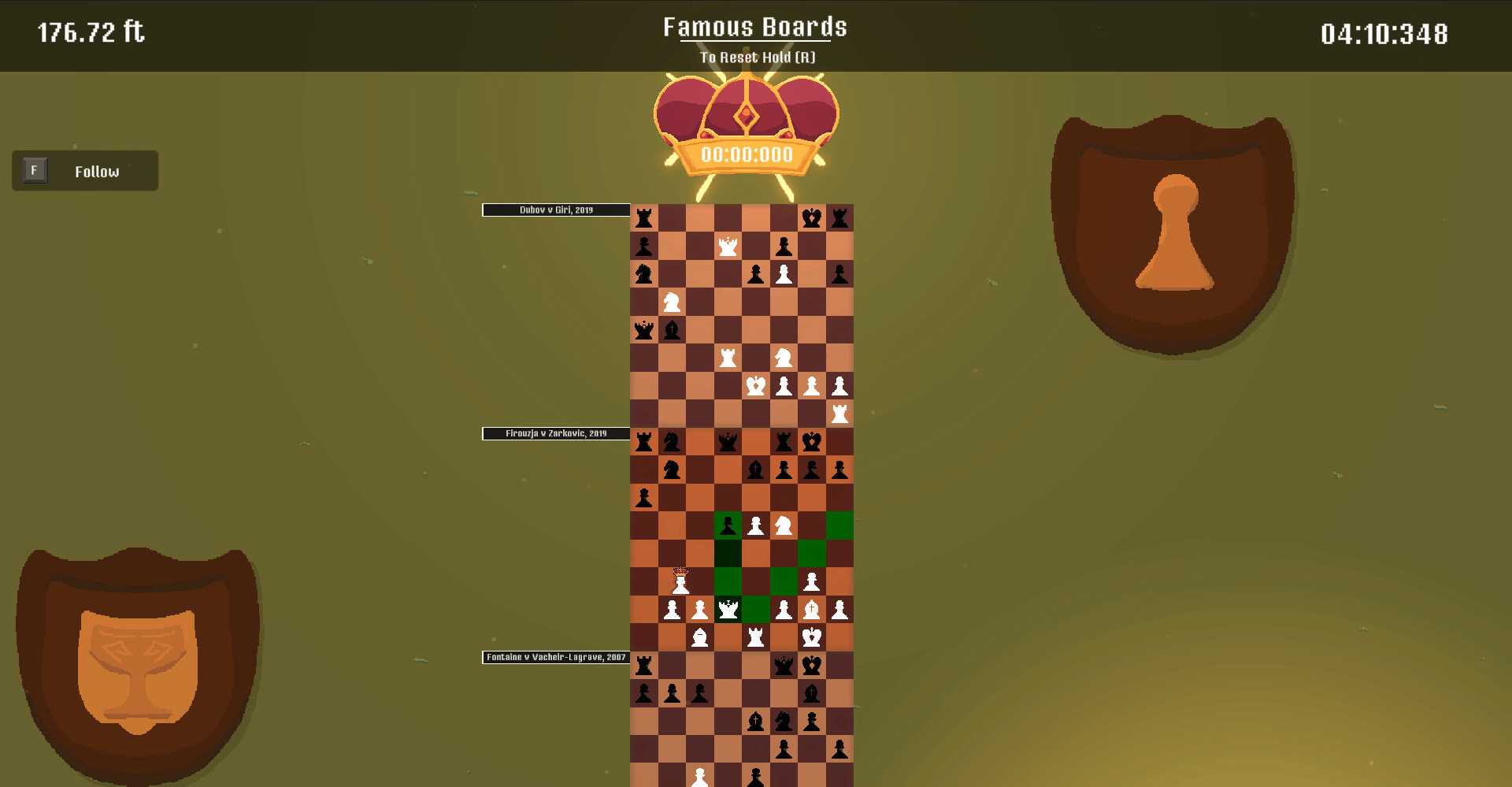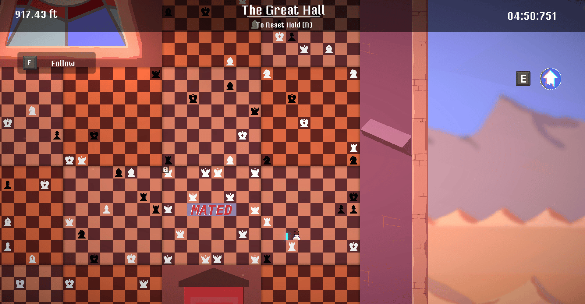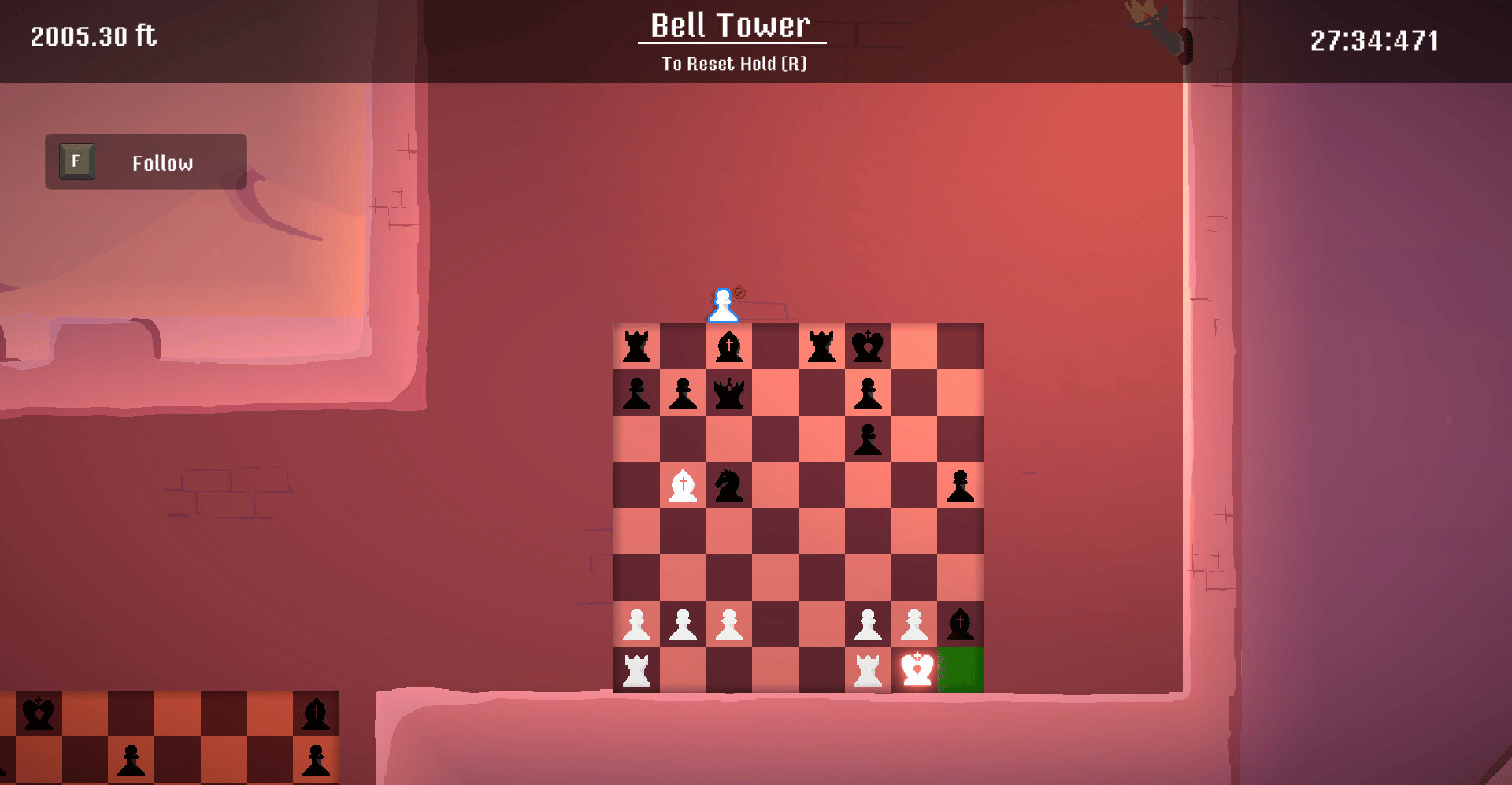 Test your brain and your brawn in the toughest chess game ever made! Play against a tough chess engine to build your path and climb upward to claim the crown, but be careful! One small blunder and you risk losing your progress. Heavy is the head that wears the crown, but who will wear it?