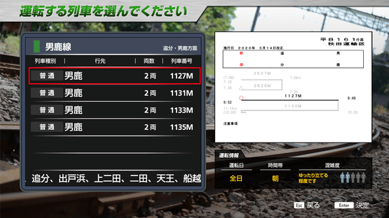 The Oga Line is a 26.4 km long line connecting Oiwake Sta. in Akita City, Akita Prefecture, to Oga Sta. in Oga City, Akita Prefecture.All trains operate directly to the Ou Line, and this DLC includes a 39.4 km long section, including a portion between Akita Sta. and Oiwake Sta. on the Ou Line.