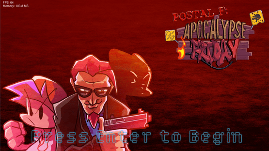After the events of the first week, the dude sees himself encountering a familiar face: Krotchy! Go up against Krotchy in a new nutsack wrenchin' week, along with another song we can't seem to figure out! Boyfriend seems to have found himself in a sticky situation when he enters the wrong side of town... Postal F: Apocalypse Friday is a mod based around the Postal franchise, created by Running with Scissors Studios. In this mod, you go against the infamous "Postal Dude" in a 2 song mania featuring Boyfriend and a familiar Redhead. Will you survive or regret your decision? On behalf of the mod team, we all hope you have an enjoyable experience. This mod started out simply as only a cover but evolved into a 2 month long passion project.