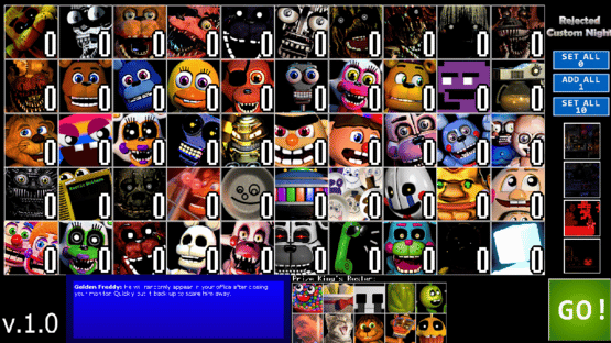 Rejected Custom Night is an "Ultimate Custom Night" fangame.