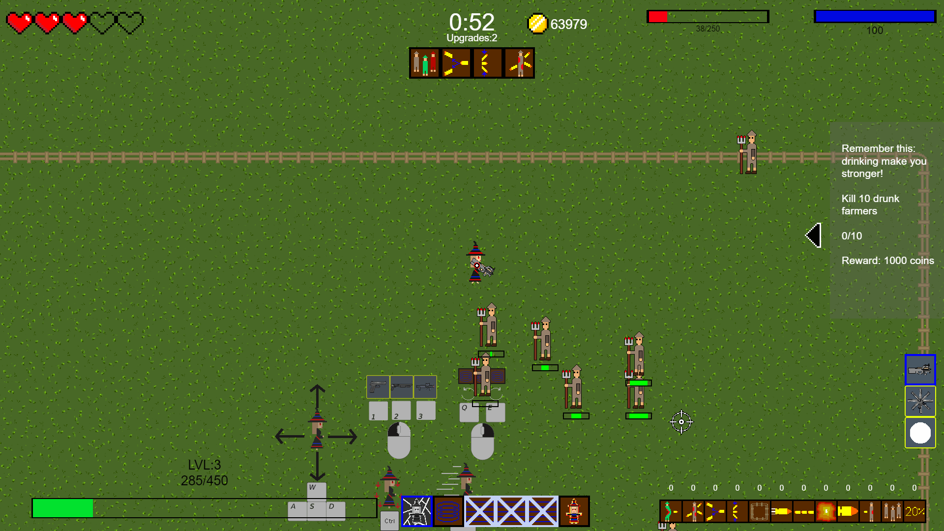 You come back to your house, but you don't find your spellbook where it should have been. Someone has stole it! And looks like you got some company too. Time for plan B: Guns.