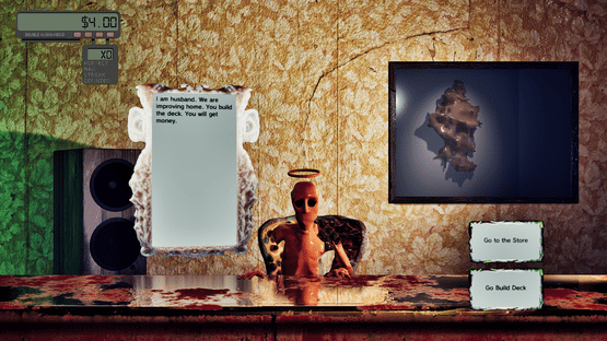 Rogue Light Deck Builder is a digital wooden board game. Your house needs a deck. You have a hammer. You have wood and you have nails. The light outside is faulty. You work, you earn. Freedom is $1,000,000. Build a deck. Use your hammer. Drive the nails in. Scrimp and save. Freedom is just around the corner.