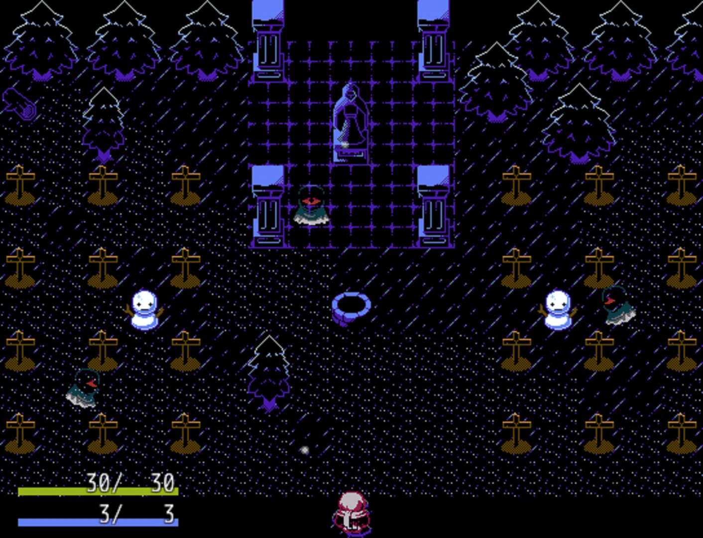 Hart's Toil is a puzzle-adventure game inspired by the cruel game design of La Mulana and NES games. Solve 2-4 hours worth of puzzles and collect items that will allow you to solve more puzzles. Defeat the witches of the underground to gain the materials needed for a ritual that will let you escape hell. The mechanics of the game are simple. You can move in 4 directions, interact with things in front of you, and use items in your bag. The environment and roaming creatures can damage you, and you will die if your HP reaches zero. Some items may require MP to function, specially items used to kill enemies. The puzzles are mean and intentionally obscure. It is recommended that you play along with a friend sitting by your side and solve the puzzles together.