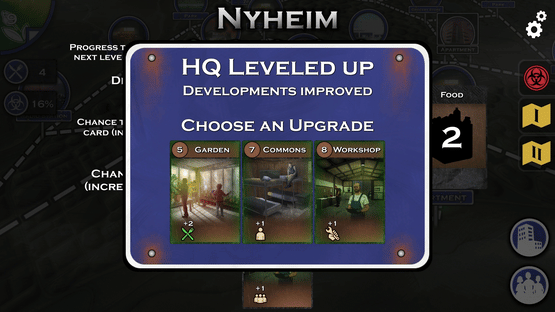 Nyheim is a single-player digital boardgame about rebuilding the titular city of Nyheim after a lethal pandemic. As survivors of the disease, your party must explore the districts of Nyheim, face mutated rats, gather supplies and lead the efforts towards a new society!