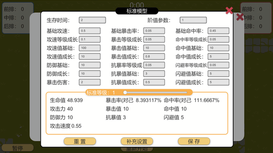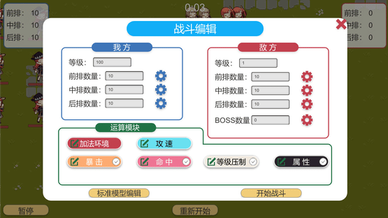 You can use the combat simulator to simulate the battle pace under three damage calculation formulas (addition, division, multiplication), and in the settings, you can choose to restart after the battle ends to calculate win rates.