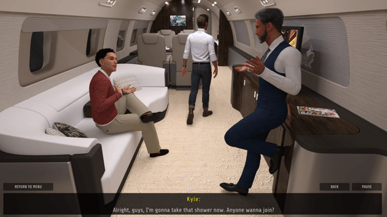 An erotic VISUAL NOVEL featuring HD GRAPHICS and realistic-looking characters. Tony and his two assistants jet off to an overseas conference aboard the company’s luxurious private jet. The Mile High Club welcomes them in great style.