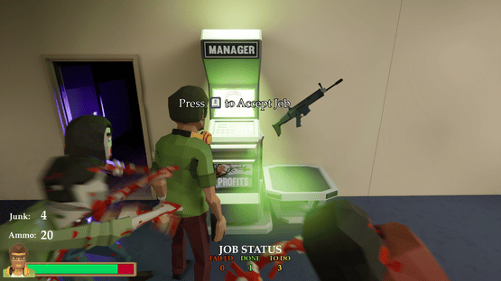 Work sucks, and then you die... and apparently become a zombie. A fast-paced third person shooter with some unconventional weapons.