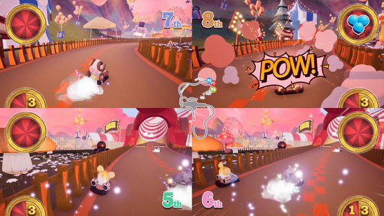 Race through an enchanting carnival and be on the lookout for wacky obstacles and cool shortcuts as you compete against up to three other friends in this cute and cartoony arcade racing game!