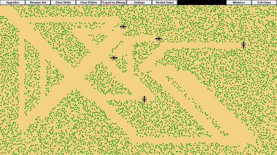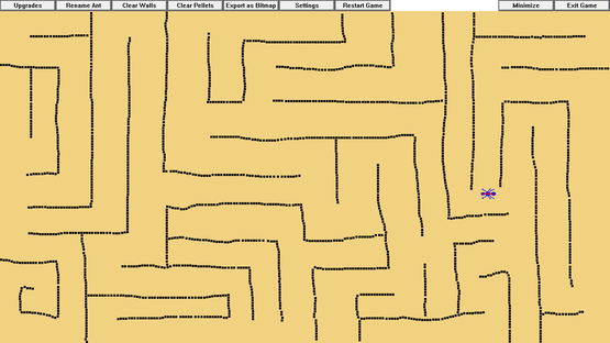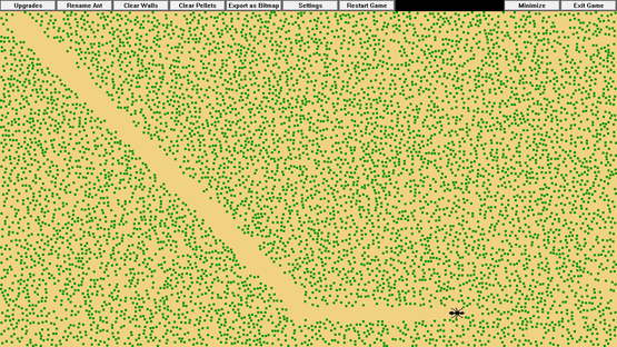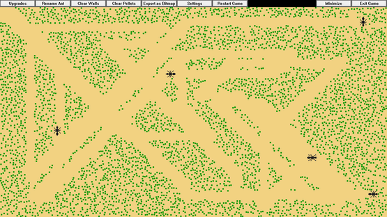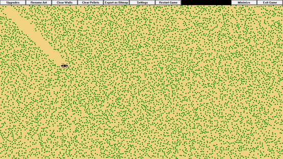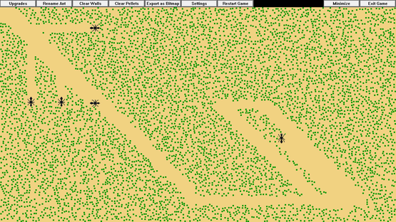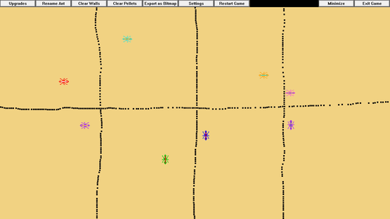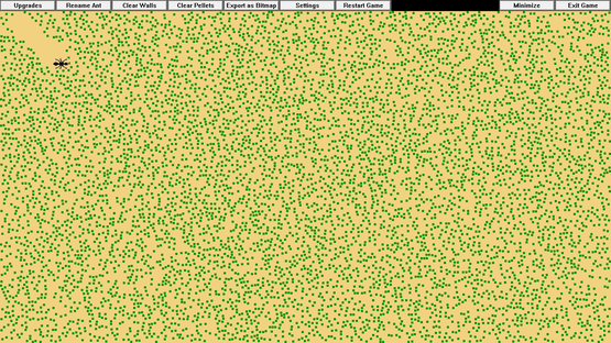 This idle game allows you to simulate and grow a colony of pix-ants. You can watch as they autonomously explore the screen, eating pellets, and earning you new ant colorations and automatic feeder upgrades. You can also give the ants names, and interact with them in various ways.