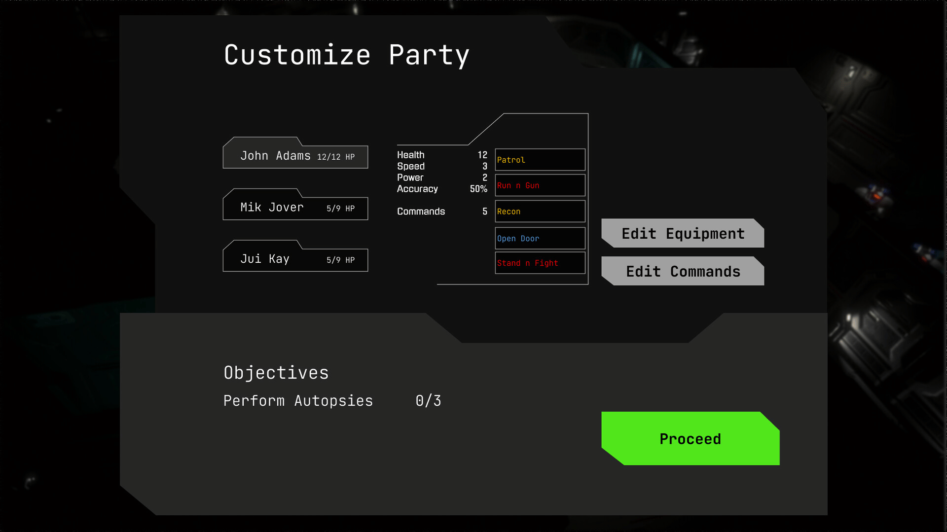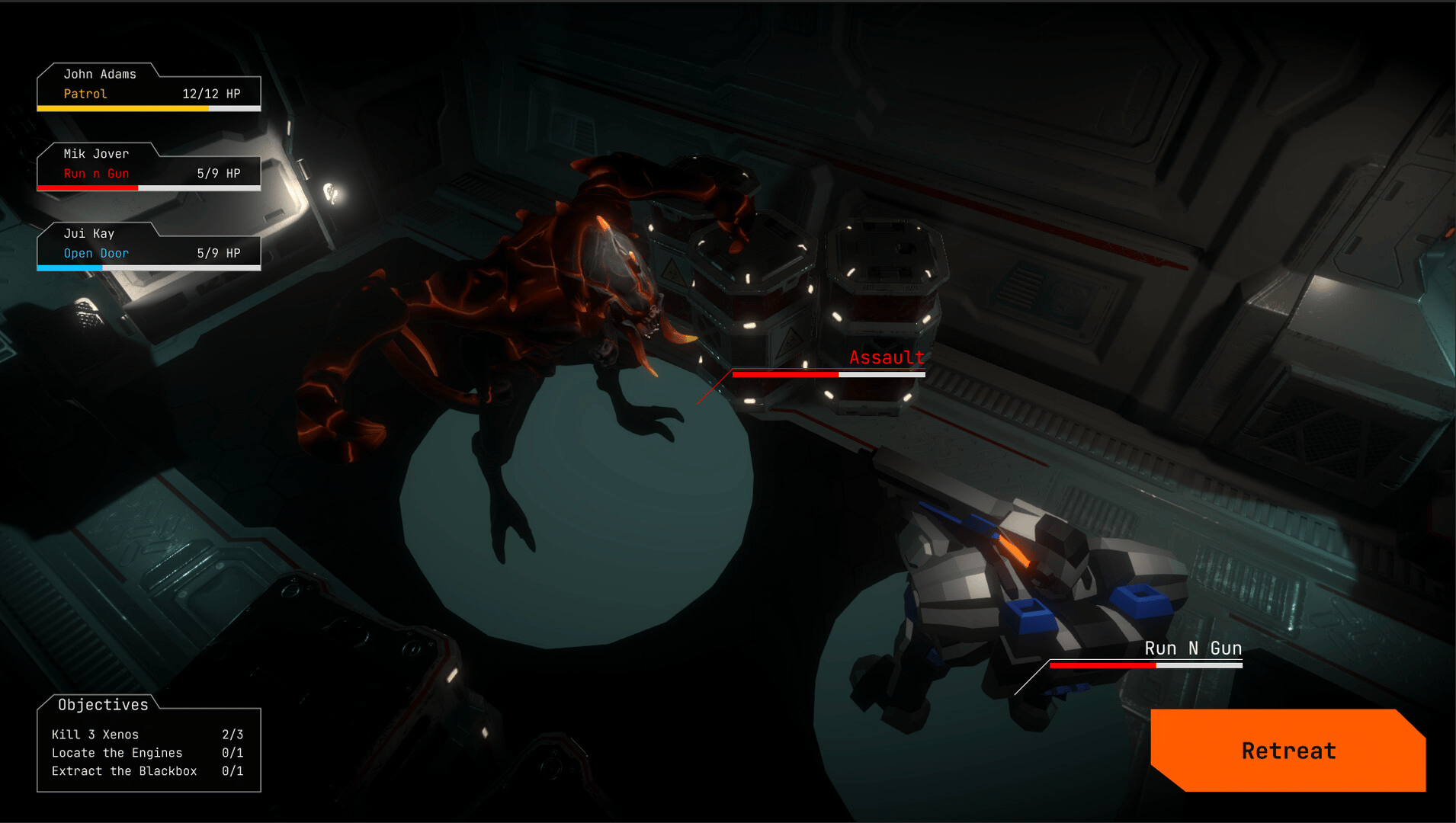 Manage a squad of battle-hardened xenos-killing marines on their mission to cleanse the galaxy. Edit their Artificial Intelligence, customize their loadout and send them on their mission.