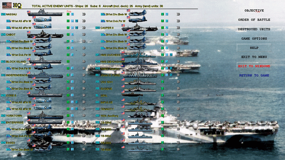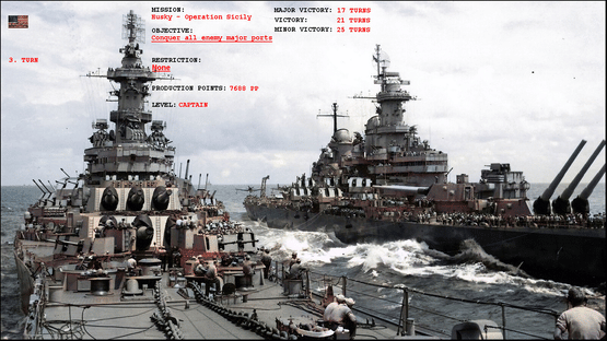 Casual WW2 naval turn-based strategy: attack/defend, search & destroy, build ships, subs and aircraft. Clear and simple combat and move. Fast, re-playable board game style strategy, with 70 unit types. Different missions/campaign objectives (Destroy, Conquer, Defend, Escort, Kill-Them-All).