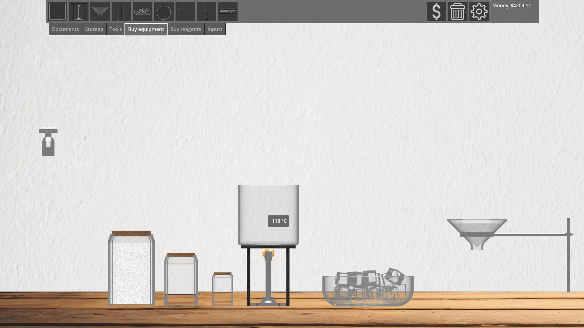 A game where you take part in an immersive chemical laboratory simulation. Produce various mixtures using equipment and substances. Use mostly mouse controls to pour chemicals from vessel to vessel.