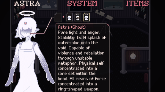 Accompany Astra as she discovers the world outside her solitude and uncovers the mysteries of the Real. Engage in shmup-style combat encounters to leave an impact and fight back against the ones who would challenge her EXISTENCE.