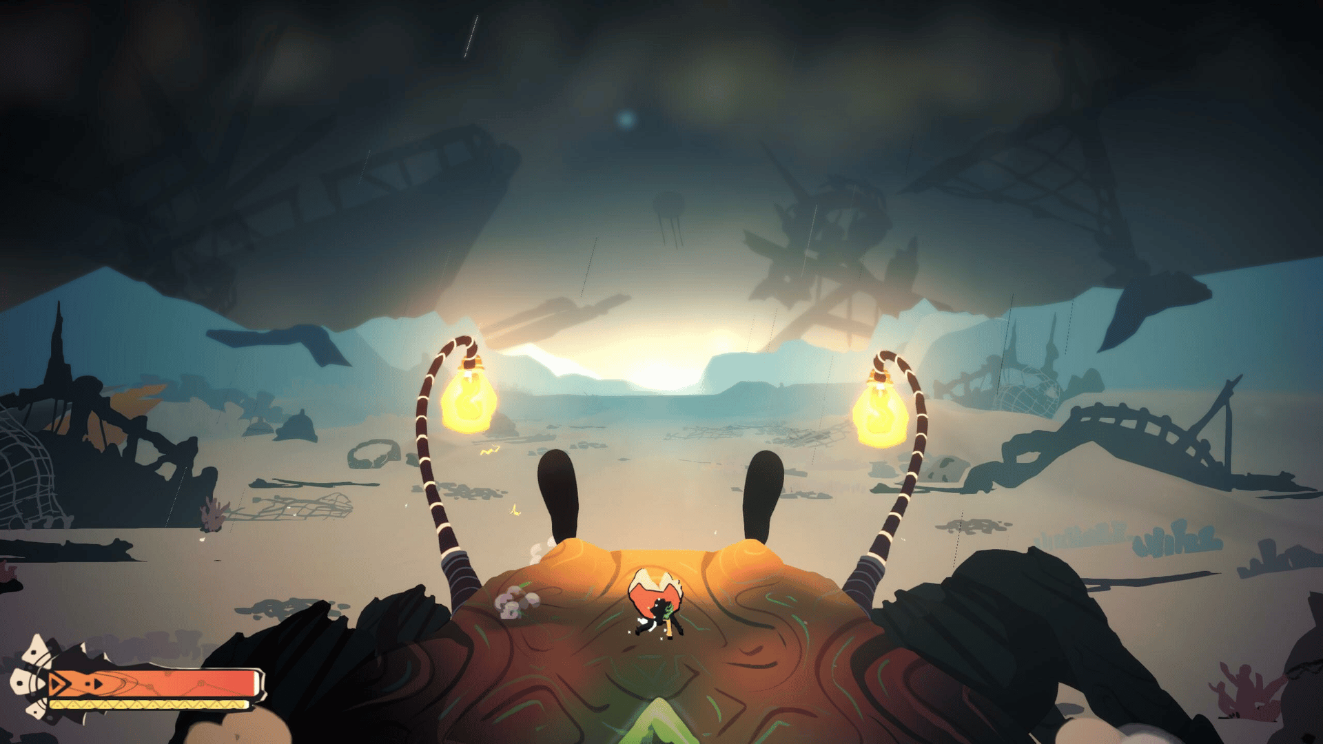 Face a horizon of forgotten myths, sunken relics and mysterious creatures! Fly, shoot and explore your way up the Sidereal Riptide, a dark expanse of water and the cradle of infinite drifting islands.