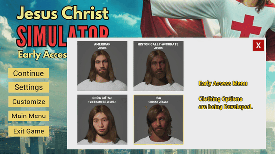 'Jesus Christ Simulator' is a new take on the 'Superhero Simulator' game genre. You are tasked by God your Father with fixing the broken system that humans now live in. Armed with Unlimited Miracles, Flight & Superpowers, you will change the world and help its people. You are THE Ultimate Superhero!