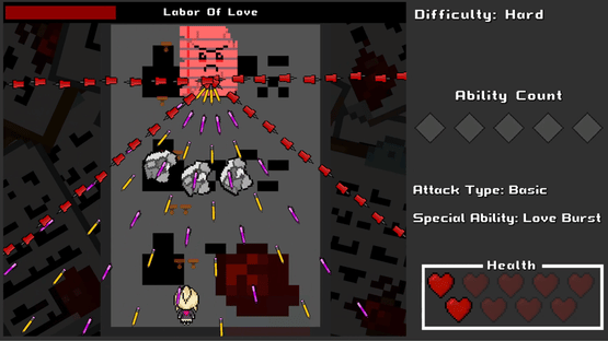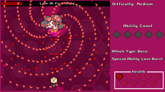 Love Hell is a cross between a Visual Novel and a Bullet Hell where you have to battle your emotions in order to get with the boy of your dreams! Participate in school activities, defeat your rival, and even play...rock, paper, scissors? Embark on an action-packed journey for romance!