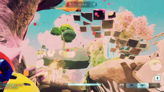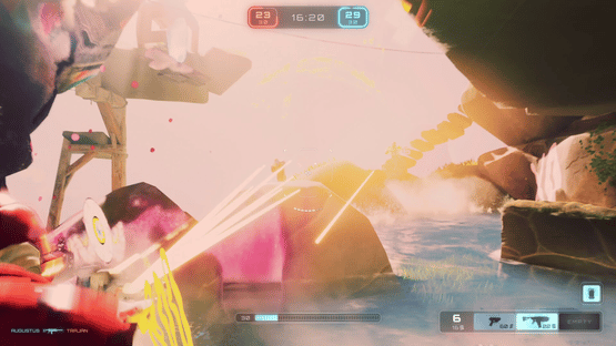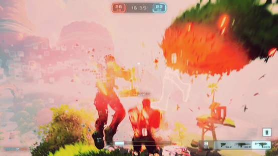 A frantic third-person Team Deathmatch arena shooter. Flank your enemies using hidden teleporters, tunnels, and floating islands. First team to 30 takes the glory. Get your loadout ready, engage in intense matches, and conquer the stars!