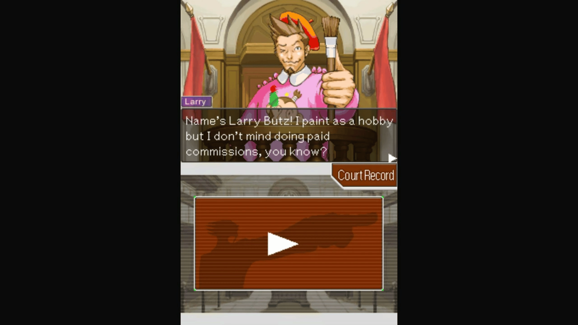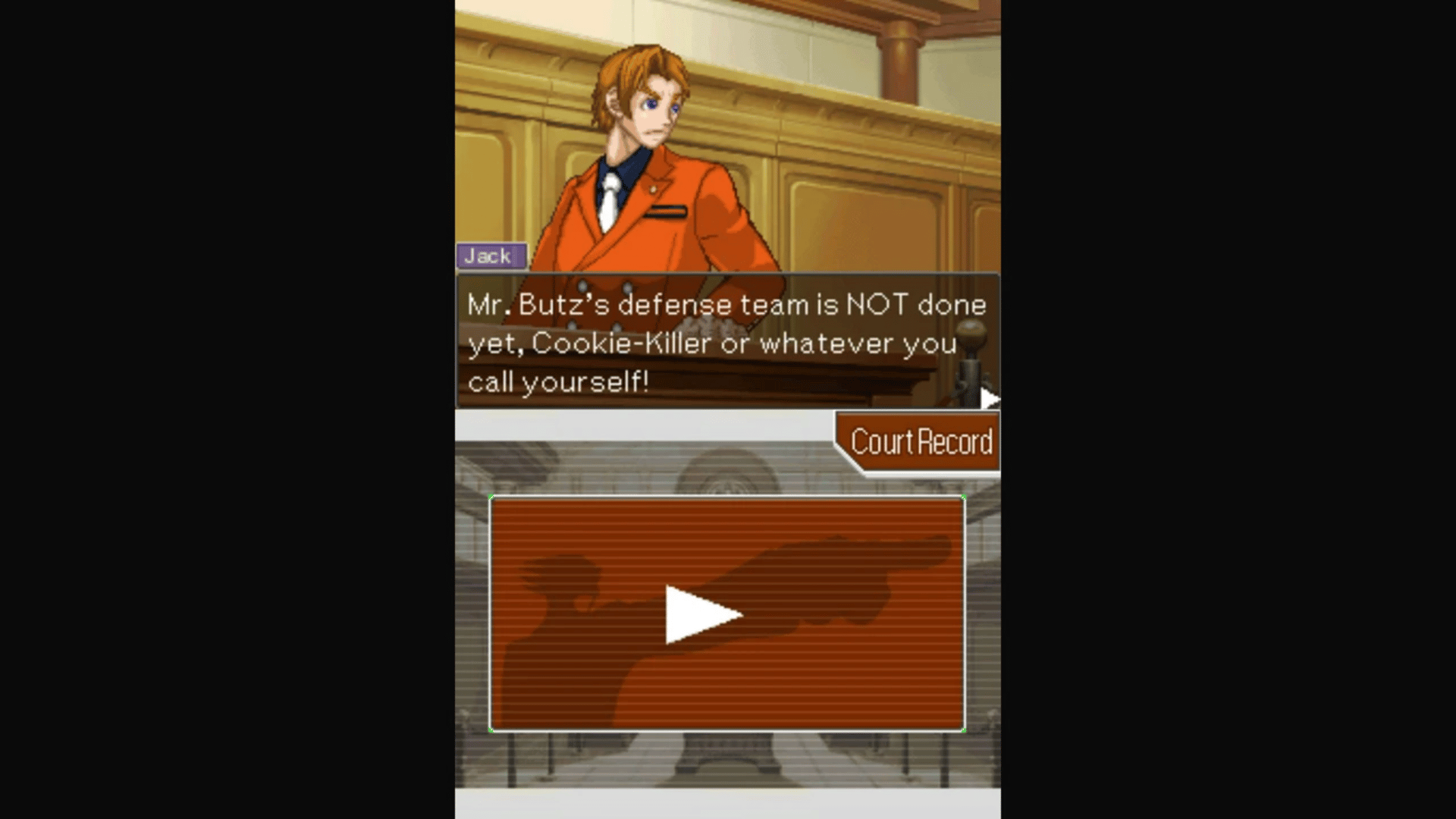 We play as Jack Mason, an old friend of Phoenix Wright that traveled to his country to finally meet him, after a long time and finishing his law studies. He was told to rendezvous in an unusual place: a courtroom lobby? And, apparently, there's also a trial today? What? A certain Larry Butz was arrested for car theft and murder!? But he doesn't even own a license!