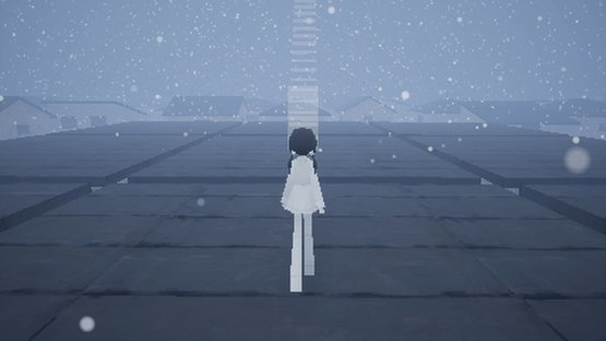 A world where snow falls, a landscape of dream-like memories.