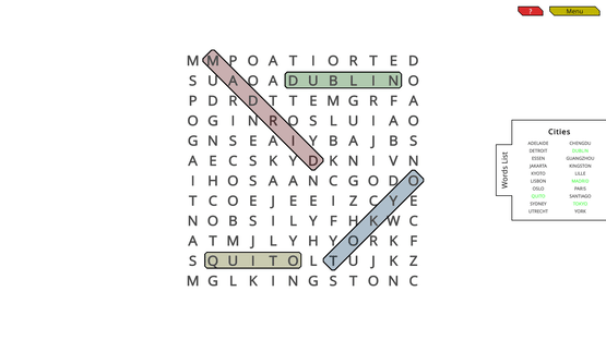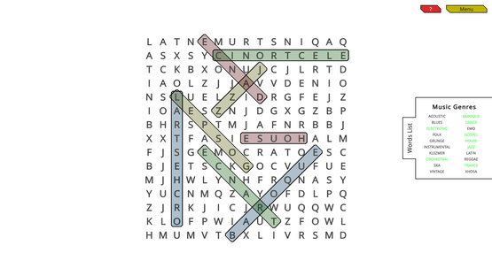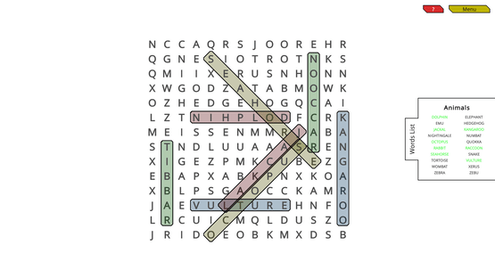 WordSearch is the classic game of finding words in a grid of characters. Every level is random. Every level uses a random subject and picks random words for that subject. The placement of the words are random too. You won't play the same level twice. Use your mouse to select the words in the grid.