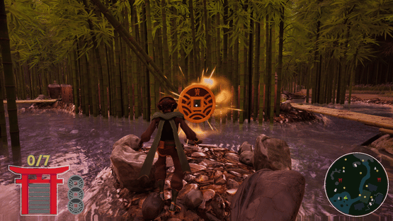 Shrineflow is a multiplayer (1 vs 1) hide-and-seek game between a Kitsune and a Ninja. The Kitsune uses her magical abilities to track down her opponent. The Ninja uses his stealth skills to stay undetected while he collects enough to coins to break into the treasure trove.