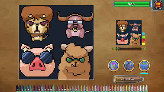 Welcome to 8-Bit World! Paint by numbers and take portraits of various pixel art scenes!