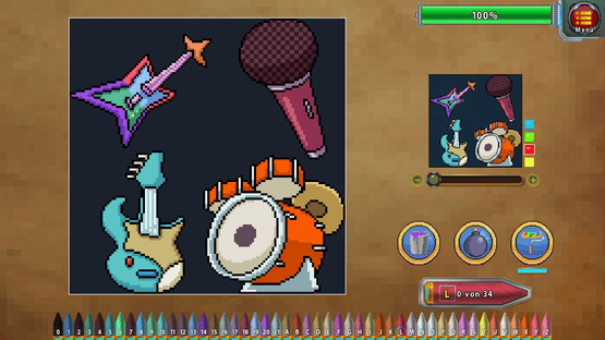 Welcome to 8-Bit World! Paint by numbers and take portraits of various pixel art scenes!