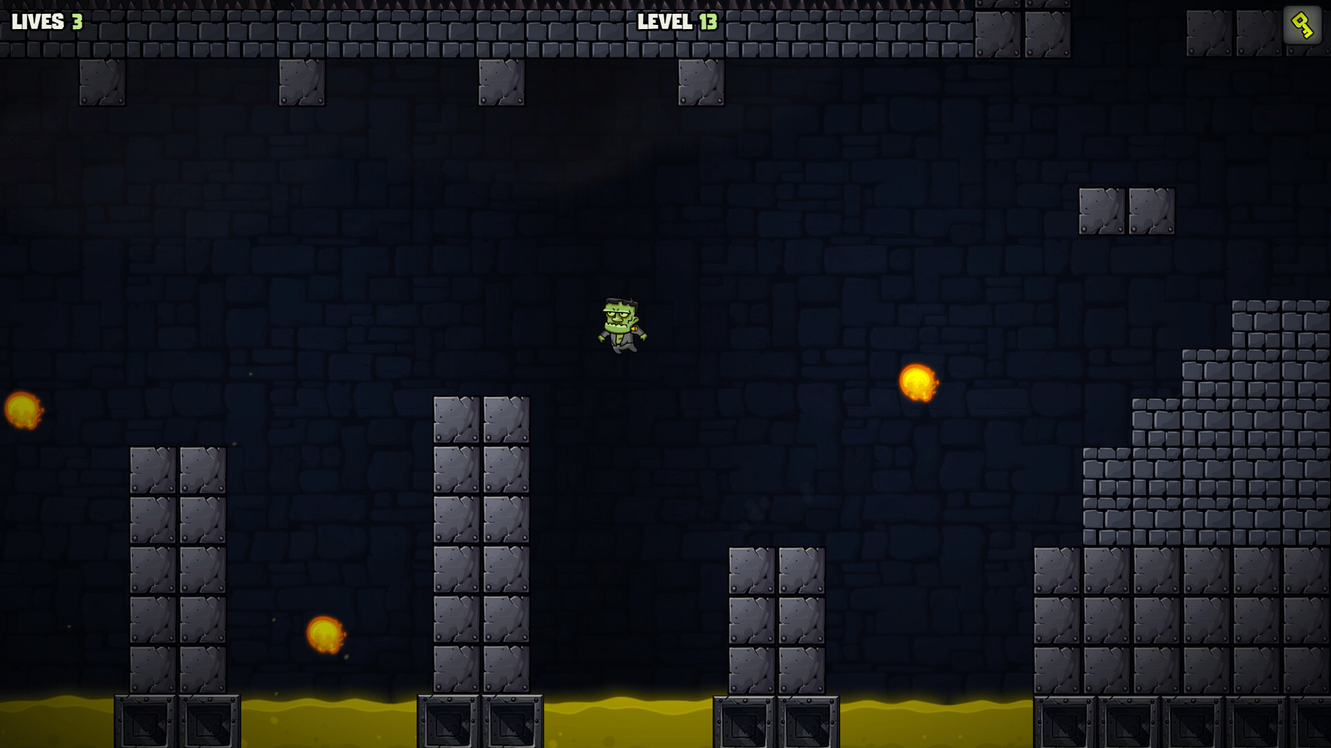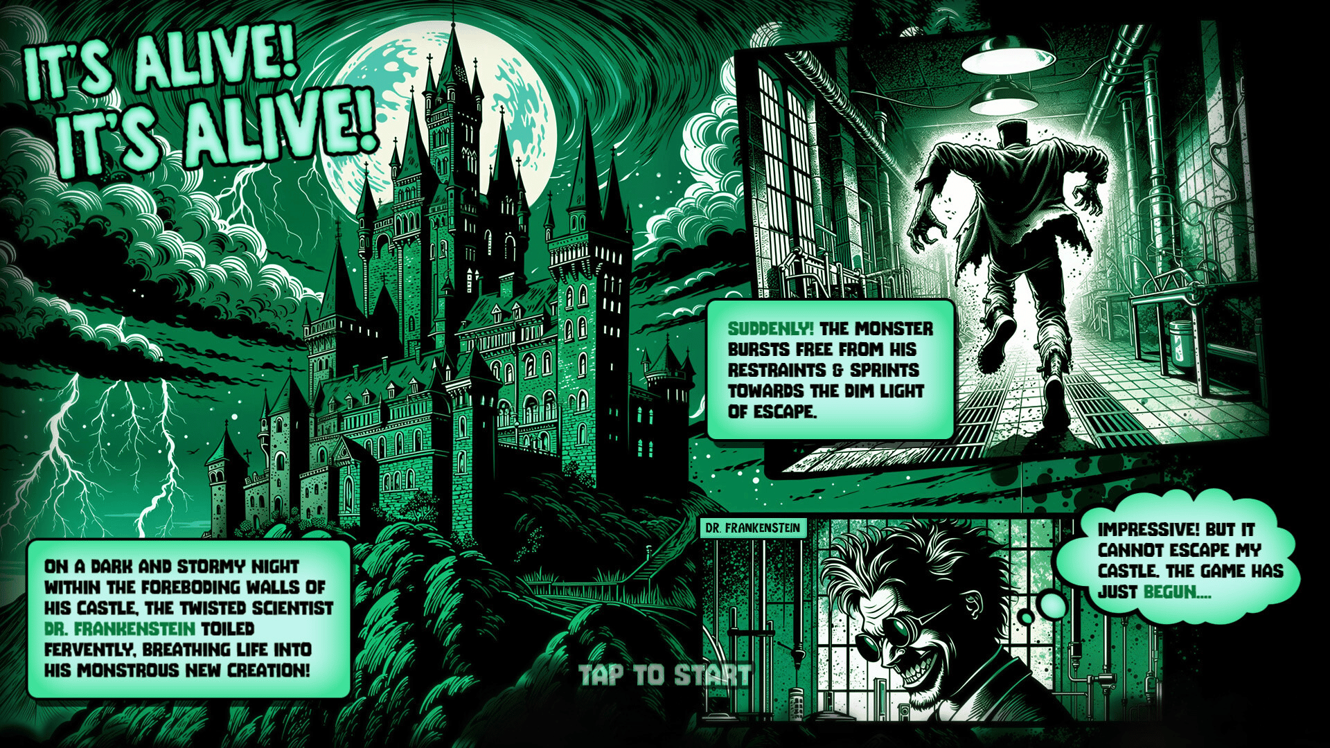 Escape from Castle Frankenstein is a thrilling platformer game where you play as Frankenstein's monster, a creation desperate to flee the dark halls of Dr. Frankenstein's ominous castle. Will you outsmart Dr. Frankenstein and gain your freedom, or will you be trapped within these walls forever?