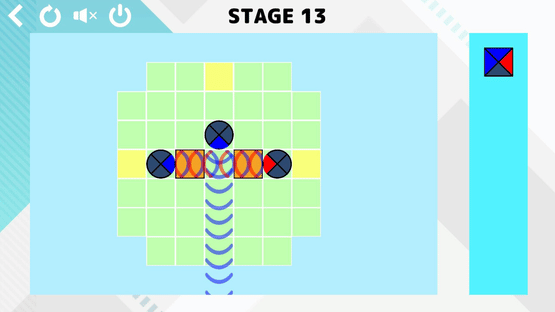 A puzzle game using magnets. A table puzzle to be solved by using the pulling and repelling forces of magnetism. Place the magnetic pieces and guide them to the goal point.