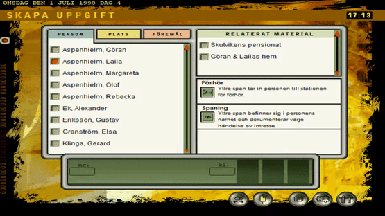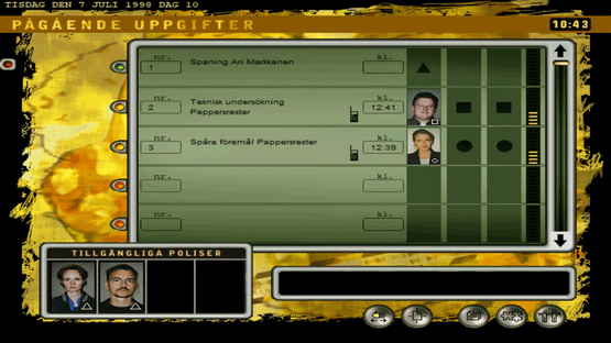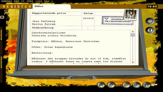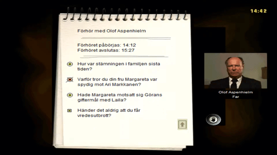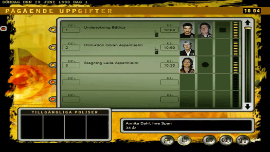 Polis is a Swedish game where you play as a leader of the homicide investigation unit and the task is to solve a 3 different murder cases. The gameplay consists of assigning team members to find evidence as well as conduct interrogations. Eventually you will have enough to put together who the murderer is. After the initial release the game was re-released in three separate acts representing the 3 cases: - Polis: Det röda fallet - Polis: Det gula fallet - Polis: Det blåa fallet