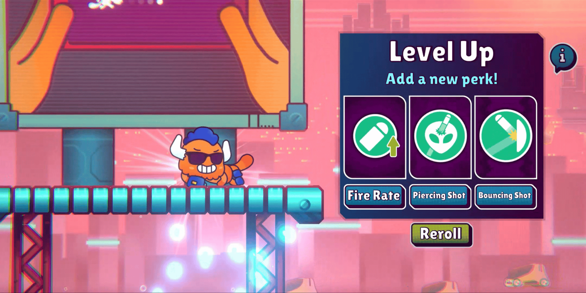 Kain Cobra: Autogun Blaster is a 2D rogue-lite fast-paced shooter that blends kawaii charm with neon fury where our lazy anti-hero fights a mysterious intergalactic alien invasion to save Planet Blue!