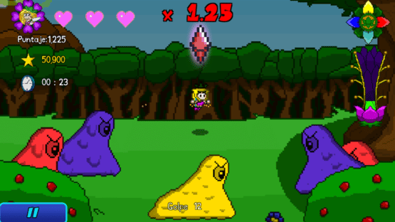 Play as Flowxie the Fairy, and defeat the monsters with your magic. Prevent your fairy treasure from being stolen. The game is arcade type, so it will end until you run out of life. Reach as many points as possible and get coins to spend in the store and get special stuff.