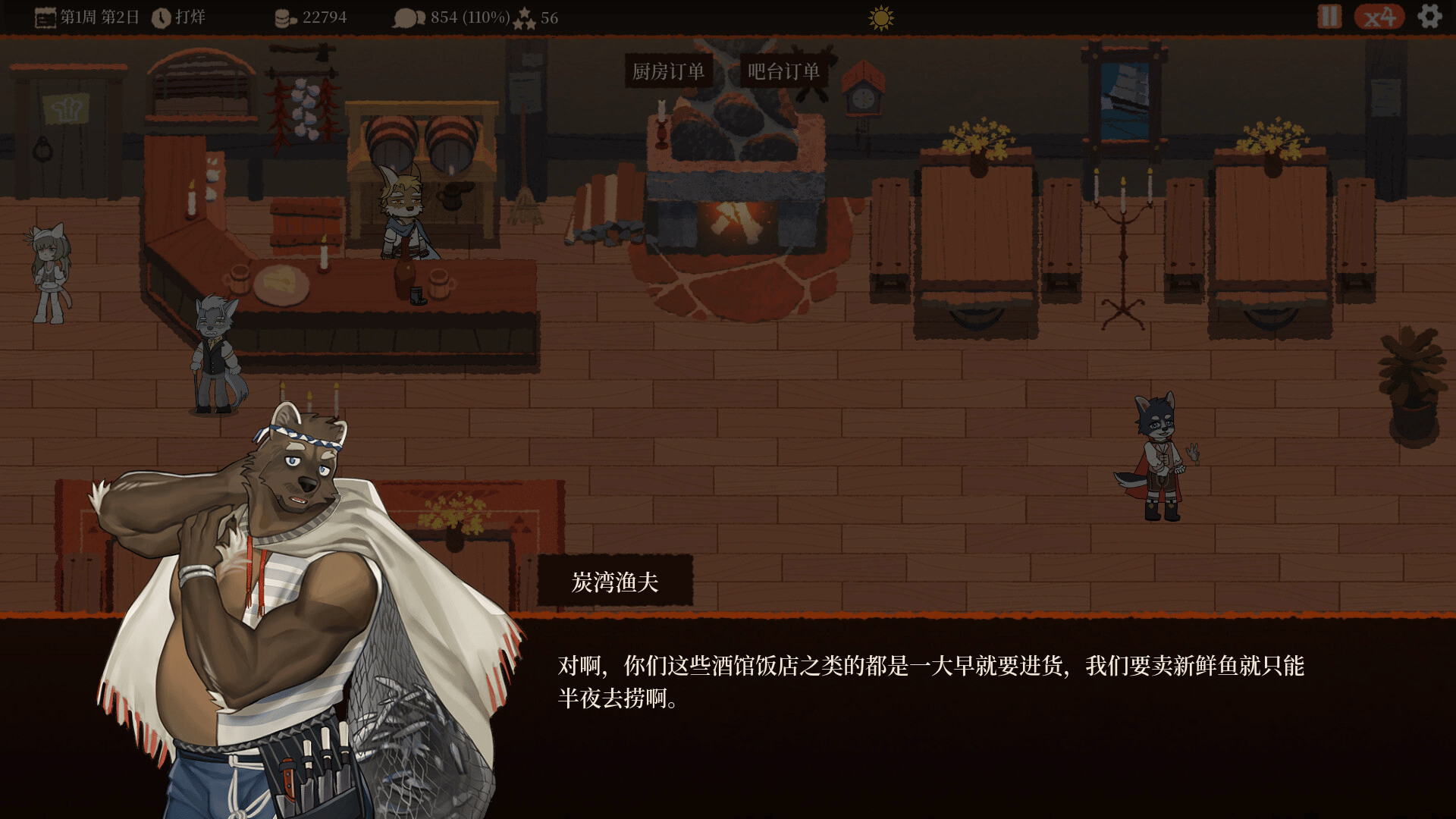 You're a rookie owner who has inherited a tavern. Set up tables and chairs, buy equipment, issue commissions, fulfill orders, make hundreds of different styles of food and drinks. Recruit employees with different personalities and skills. Also learn their stories and let them into your life.
