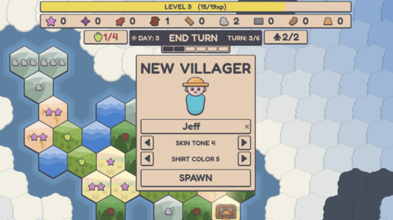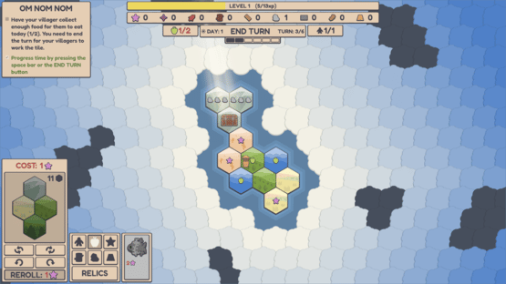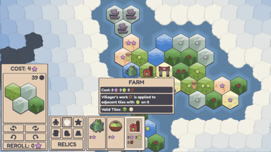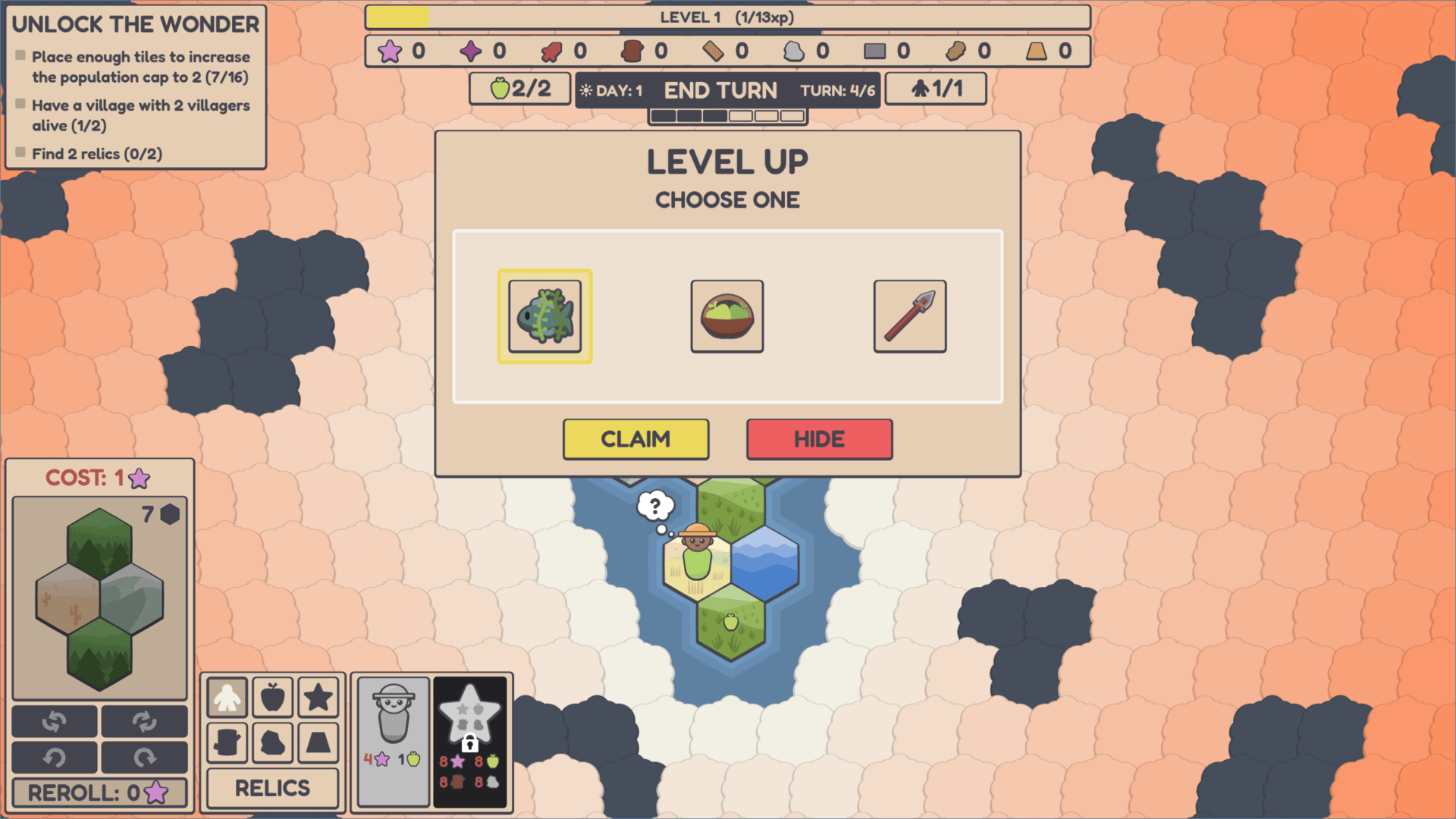 A minimalist roguelike village builder where you place hexagon tiles, manage resources, and command your villagers.