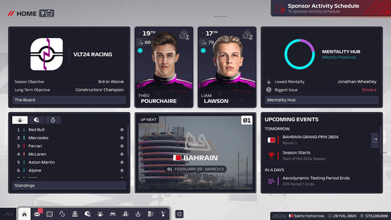 Lead your team to glory in F1 Manager 2024. A new Formula 1 season has arrived, and with it, the most comprehensive F1 management experience to date. Build a legacy with one of 10 official F1 constructors or create your own team for the very first time.