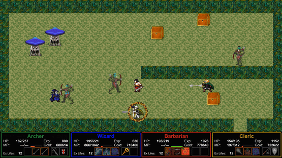 Cooperative gameplay for 1 to 4 players on a single computer using keyboards and controllers. Choose from 9 distinct hero classes to explore diverse floors and biomes, battle monsters, and acquire upgrades, equipment, and items.