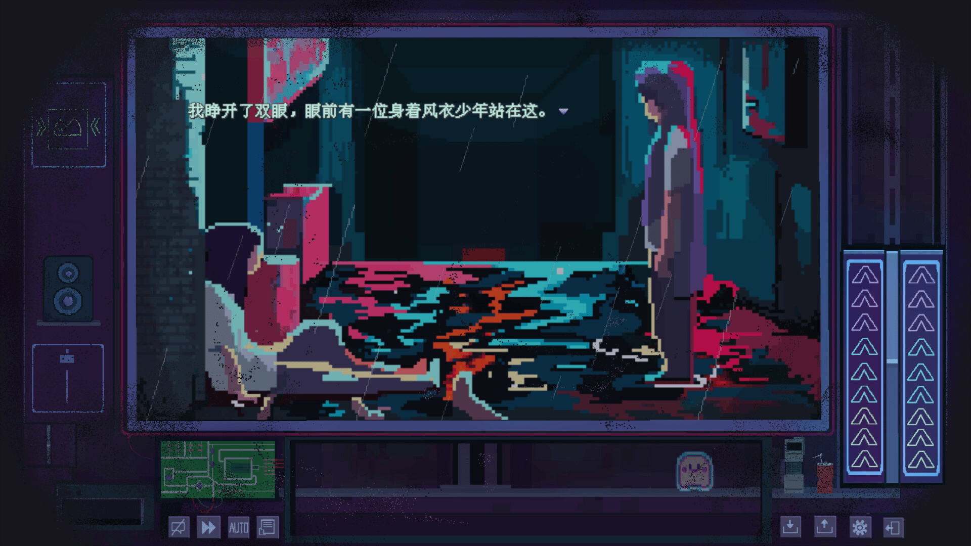 This is cyberpunk themed, pixelated love adventure text game. A rainy encounter and an inevitable cohabitation lead to a journey of mistaken identity. As a robot, your funny love adventure story with your beastmen partners unfolds from here.