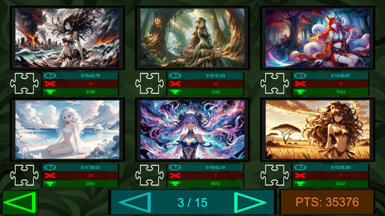 Tehawar Puzzle! is a simple, relaxing jigsaw puzzle game with original gameplay mechanics. 90 high-quality images to unlock, mostly featuring beautiful women in bikinis in fantasy settings (all images are SFW).