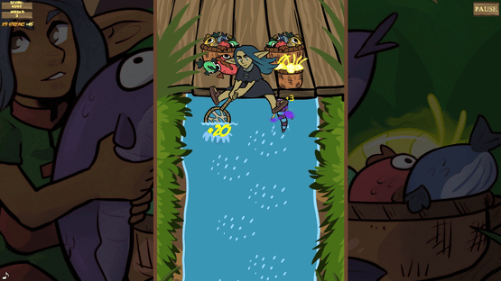 A simple arcade game where you maneuver your net to the left, right, and middle positions to gather as many fish as you can while avoiding the nasty snakes. Playing earns currency that can be spent on cosmetics. Do you love fishing and fashion? Then Fish Flash is for you!