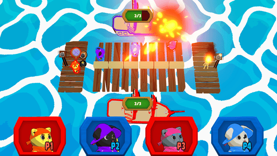 Paw Pirates is a 2v2 party game with cute critters! Tackle, Dodge and Blow Up your friends as you compete to take out their pirate ship! Choose team Cat or team Dog to plunder across a multitude of levels!