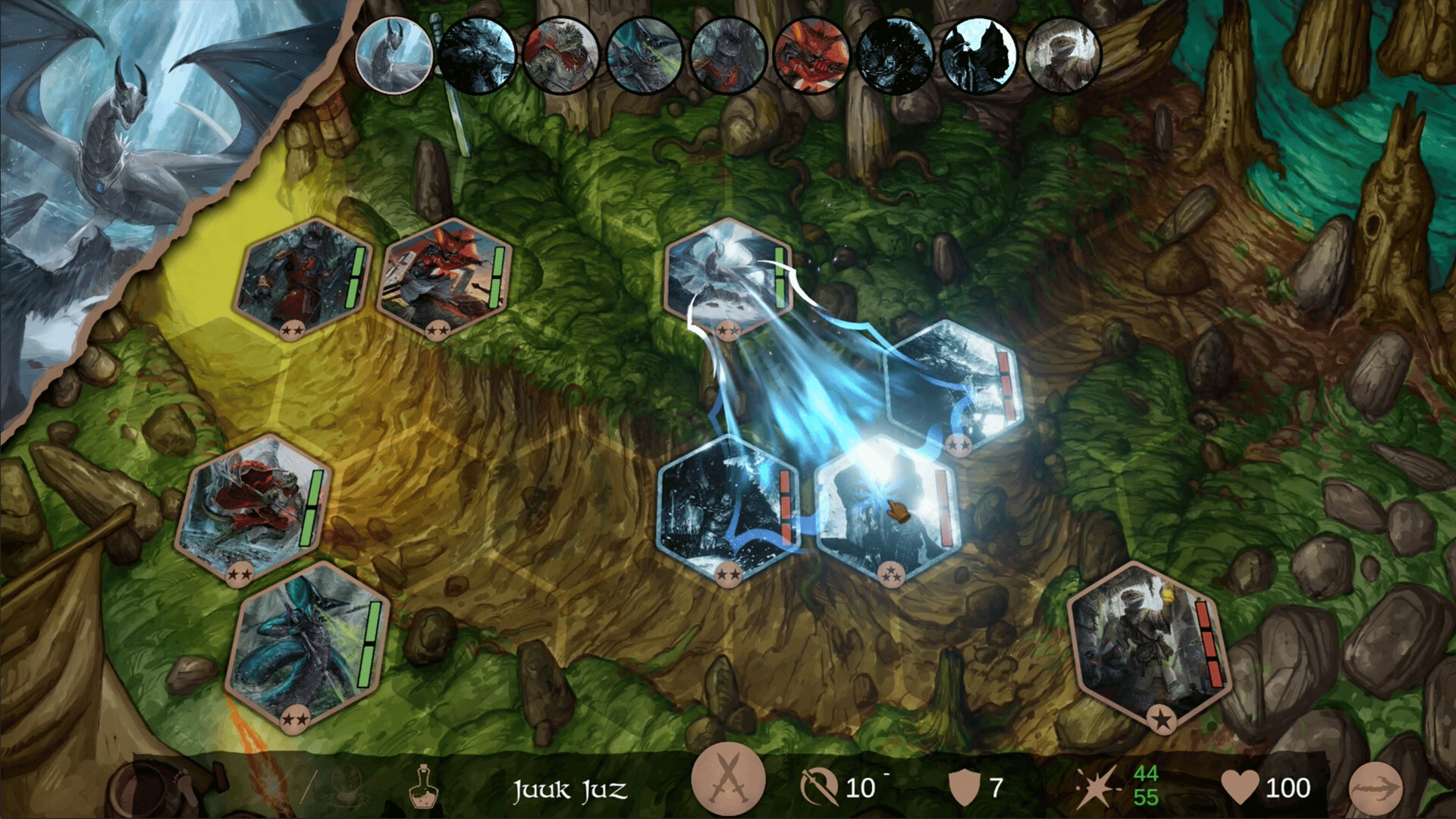 Fangs & Forges is a tactical turn-based RPG. Lead your squad through a medieval high-fantasy world. Recruit characters, accept missions and battle monsters, bandits and more for reputation and loot. Explore the world, level up your characters and stop ancient corruption devouring the world... again.