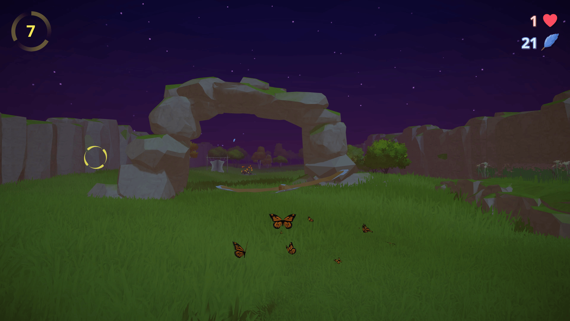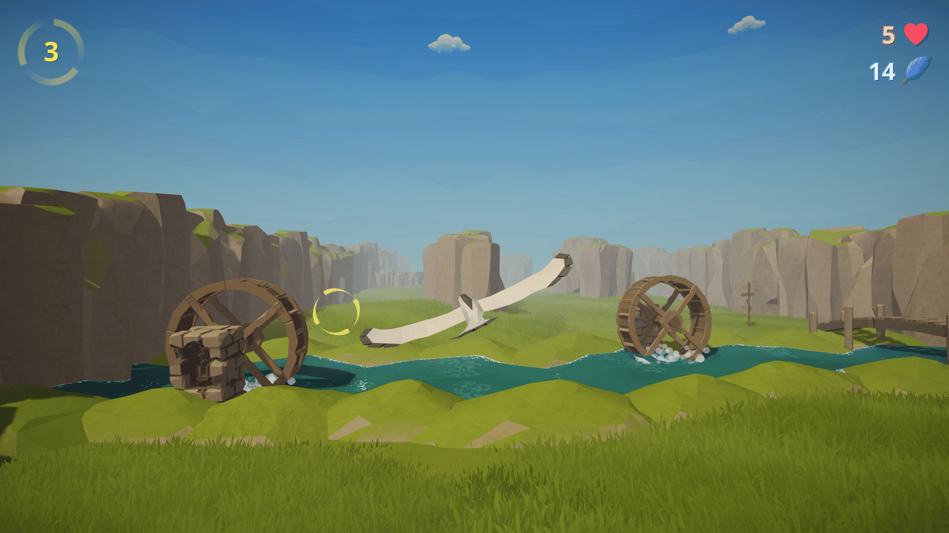 Fly Fly is an endless game where players take flight as an eagle, collecting feathers while navigating through randomly generated hoops at varying distances.